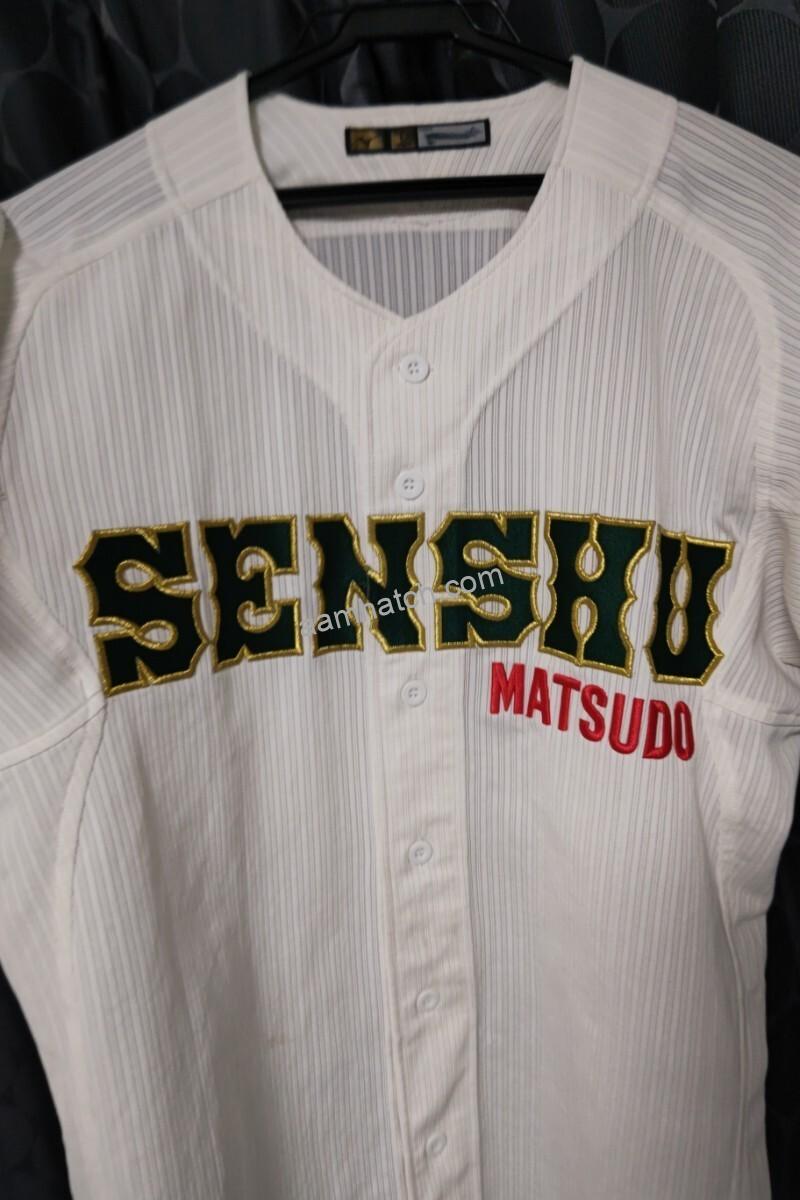 この記事を書いている2025年現在は上記のユニフォームより明るめのアイビーグリーンに黄色の縁取りがされた胸前のSENSHU。その右下に赤でMATSUDO。