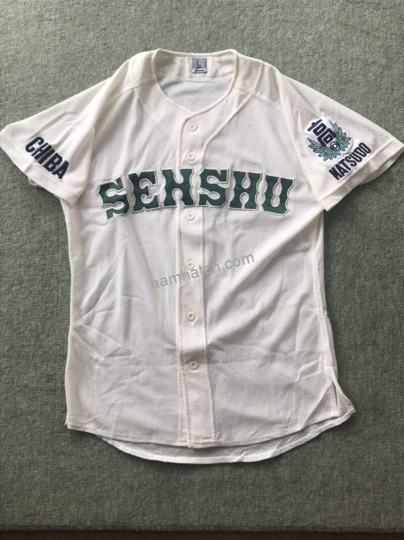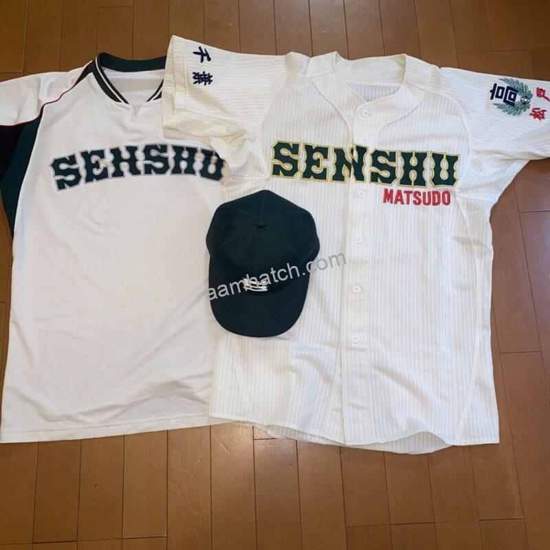 胸前にシンプルに専修大を表すSENSHU、左袖に松戸MATSUDOと刺繍されたユニフォーム時代。SENSHUの文字色は濃い目のアイビーグリーン。